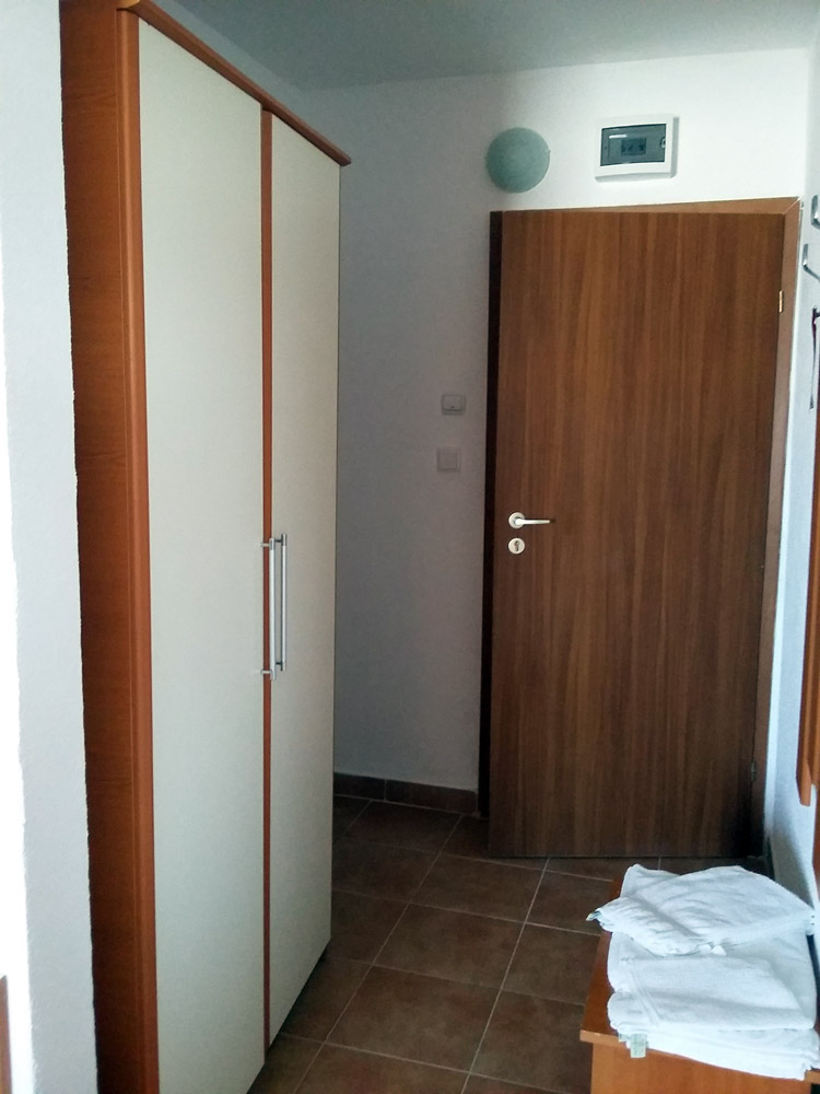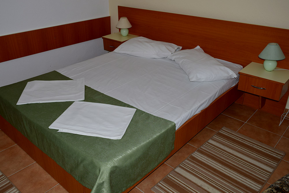 Camera dubla parter standard are in dotare baie proprie, televizor, frigobar, balcon si aer conditionat. Aceasta este camera dubla matrimoniala, orientata spre Sud-Est (Cap Aurora si Hotel Meteor)