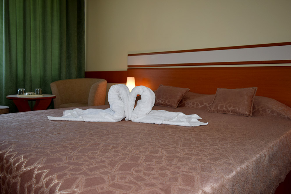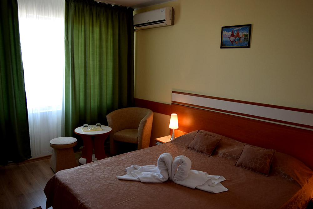 Camerele duble standard au balcon, T.V. frigobar, A.C. si sunt orientate spre Sud-Est (Cap Aurora si Hotel Meteor).